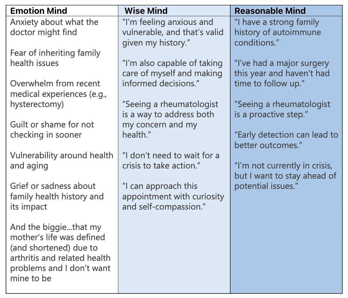 That’s when I was introduced to the concept of Wise Mind in Dialectical Behavioral Therapy (DBT). It was a revelation.